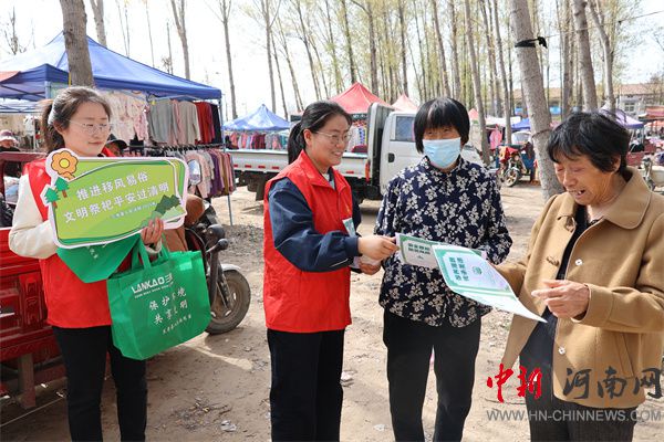 中新河南網(wǎng)4月3日電:又是一年春草綠,梨花風(fēng)起正清明。清明節(jié),是春季的第五個(gè)節(jié)氣,它兼具自然與人文兩大內(nèi)涵,既是自然節(jié)氣,也是傳統(tǒng)節(jié)日,掃墓祭祖與踏青郊游是清明節(jié)的兩大習(xí)俗主題。為弘揚(yáng)中華民族的傳統(tǒng)文化,樹(shù)立文明、環(huán)保、安全的祭祀新風(fēng),推動(dòng)移風(fēng)易俗,4月3日,蘭考縣法院組織志愿者,深入鄉(xiāng)村集市,開(kāi)展清明文明祭掃宣傳活動(dòng)。