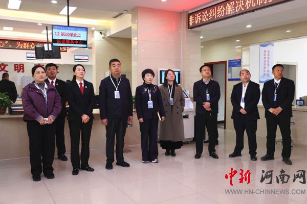 會(huì)前,與會(huì)特約監(jiān)督員一行實(shí)地參觀了法院訴訟服務(wù)中心,通過現(xiàn)場(chǎng)察看、聽取講解,監(jiān)督員們?cè)敿?xì)了解了訴訟服務(wù)中心的功能布局、“一站式”多元解紛機(jī)制運(yùn)行以及在便民利民服務(wù)舉措、案件繁簡(jiǎn)分流、多元解紛力量整合等方面的具體做法。