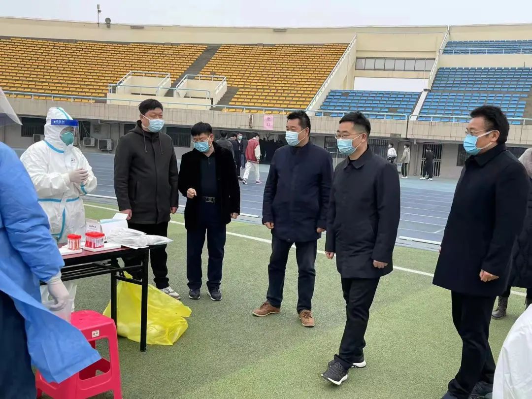 3月21日上午,河南理工大學第一附屬醫(yī)院、焦作市第二人民醫(yī)院黨委書記楊永國、院長于擁軍、副院長謝向東等領導前往河南理工大學核酸集中采集點查看運行情況。