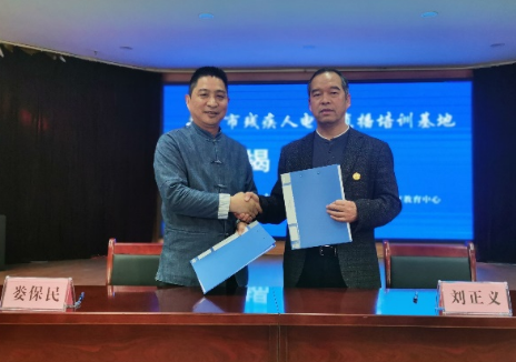 鄭州市殘疾人康復(fù)教育中心主任劉正義與鄭州市短視頻電商直播行業(yè)協(xié)會長婁保民分別代表雙方進行了簽約,隨后,市殘聯(lián)張松振副理事長與婁保民會長一起為“鄭州市殘疾人電商直播培訓(xùn)基地”進行了揭牌。