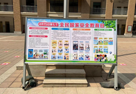 首先,學校利用LED滾動展示安全宣傳內容,使全體師生和家長了解全民國家安全教育日來歷,深刻認識到每年的4月15日為全民國家安全教育日。