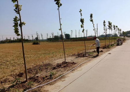 中新河南網(wǎng)6月16日電 (趙世杰)為進一步鞏固植樹成果,保證今年春季新栽樹木成活率,確保樹木長勢良好,安全度夏,遂平縣車站街道根據(jù)土壤墑情和天氣情況,集中開展多輪澆水施肥,扎實做好苗木養(yǎng)護管理工作。6月以來,針對天氣氣溫持續(xù)偏高,降水偏少,由車站街道辦事處牽頭,以社區(qū)為單位,采取就近取水、罐車?yán)刃问,對新植苗木進行澆灌補水,確保苗木不缺水、提高成活率。