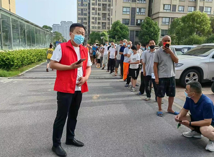 炎炎夏日下,劉文軍穿著紅馬甲戴著紅袖章,帶領(lǐng)著疫情防控志愿者服務(wù)隊(duì),在小區(qū)門口迅速指揮開展宣傳引導(dǎo)、信息登記、物資發(fā)放、執(zhí)勤點(diǎn)值守、秩序維護(hù)、消毒消殺等工作,帶頭遵守疫情防控各項(xiàng)規(guī)定,共筑疫情防控墻。最終于中午12:10分,圓滿完成周莊社區(qū)疫情防控志愿者工作。等劉文軍汗流浹背地回到家,看到的是桌上被拆開的方便面袋,而兩個孩子早已在沙發(fā)上互相依偎著進(jìn)入了夢鄉(xiāng)。作為父親,劉文軍對此感到有些愧疚,但身為黨員干部,他認(rèn)為自己必須挺身而出,為人民群眾疫情防控的安全線。