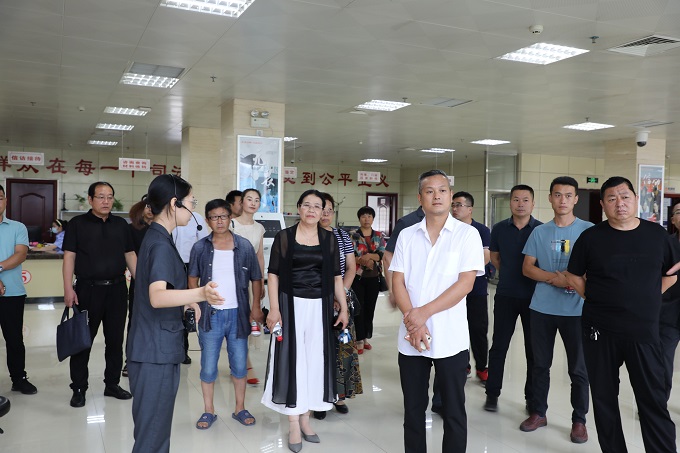 庭審結(jié)束后,在講解員的帶領(lǐng)下,旁聽人員參觀了該院訴訟服務(wù)中心、政法隊(duì)伍教育整頓領(lǐng)導(dǎo)小組辦公室、檔案室、宣傳墻及新野縣法治文化展館、青少年法制教育中心、院史館,聽取新野縣法院簡介、立案流程、審判執(zhí)行工作流程、政法隊(duì)伍教育整頓、法治文化建設(shè)等重點(diǎn)工作開展情況的講解,了解了法院依法履行審判職責(zé)、落實(shí)司法為民的各項(xiàng)創(chuàng)新舉措。通過近距離的參觀和交流,人大代表、政協(xié)委員、教師及干部群眾們切實(shí)感受到了法院文化,了解了法院工作,深刻感受到了公開、透明、便民的司法氛圍。