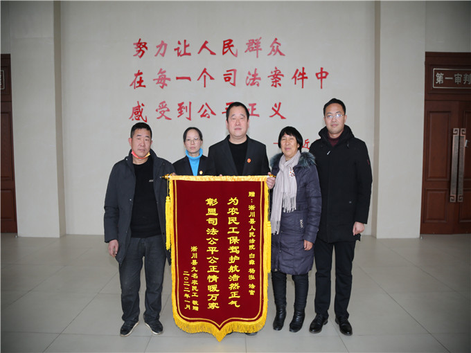 中新河南網(wǎng)2月7日電(李克選 全曉宇)“這些錢都是我們的辛苦錢,謝謝法官了,多虧有你們的高效調(diào)解,春節(jié)前才能拿到血汗錢!”2022年1月26日,2名農(nóng)民工代表9名工友將一面印有“為農(nóng)民工保駕護航浩然正氣 彰顯司法公平公正情暖萬家”的錦旗送給楊泓團隊,表達他們對法官的感激之情。