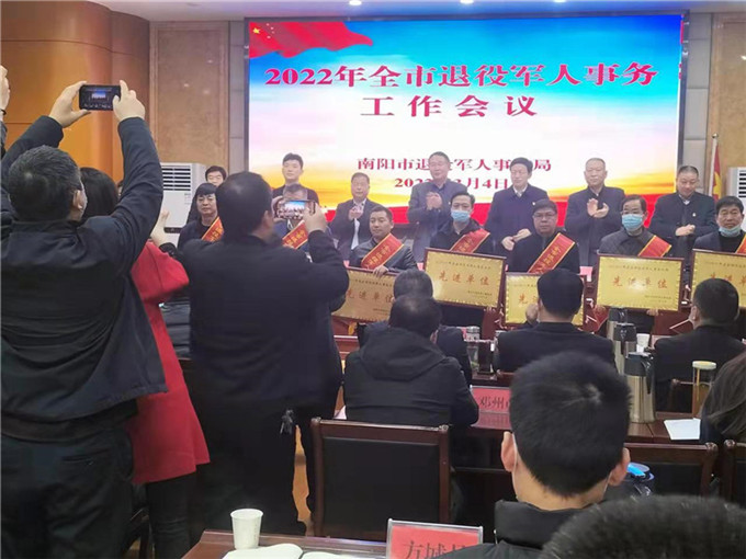 這次大會有市退役軍人事務局黨組成員、副局長秦運洪主持。大會首先對2021年度退役軍人事務工作先進單位進行隆重表彰。在歡快激昂的音樂聲中,五個先進工作縣市區(qū)退役軍人事務局黨組書記、局長身披紅色綬帶、滿面春風,充滿喜悅接受頒獎。新野縣退役軍人事務局黨組書記、局長代表全體工作人員接受表彰。