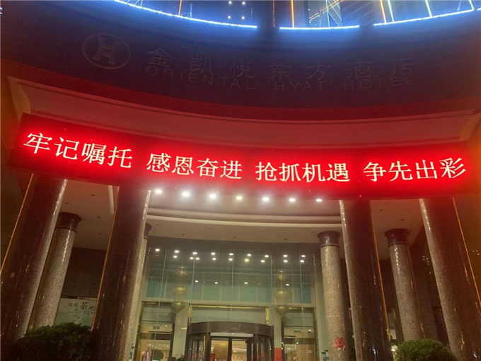 2022年5月11-12日,在距離習(xí)近平總書記視察河南省南陽市一周年之際,在南陽德?旖菥频辍⒅刑┖郎缶频、張仲景大藥房、隆泰大藥房、萬德隆連鎖超市等眾多飯店、藥店、商超等人員聚集流動(dòng)重點(diǎn)場所的大門口,滾動(dòng)顯示屏幕上面不間斷播放著“牢記囑托、感恩奮進(jìn)、高水平建設(shè)現(xiàn)代化省副中心城市、持續(xù)推動(dòng)總書記重要講話和指示精神在南陽落地生根、開花結(jié)果、加快高質(zhì)量高效率跨越發(fā)展、把總書記殷切囑托變成美好現(xiàn)實(shí)、守正創(chuàng)新、傳承發(fā)展、積極推進(jìn)中醫(yī)藥產(chǎn)業(yè)發(fā)展、發(fā)揮仲景優(yōu)勢 打造全國中醫(yī)藥名都、牢記囑托勇?lián)?dāng)、走正走好水源地高質(zhì)量發(fā)展之路、牢牢扛穩(wěn)糧食安全責(zé)任、用實(shí)干讓'中國碗'里多盛南陽糧”等宣傳標(biāo)語,這是按照高新區(qū)安排部署,在南陽市市場監(jiān)管局高新分局的大力組織協(xié)調(diào)下,轄區(qū)市場主體積極宣傳習(xí)近平總書記視察南陽調(diào)研精神的工作成果之一。