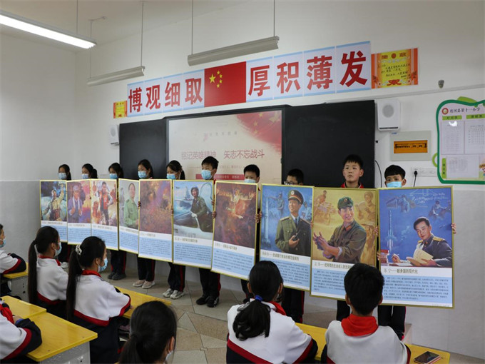 在教室里,人武部政委胡彬冰進(jìn)行《銘記英雄精神、矢志不忘戰(zhàn)斗》為主題的國防教育授課。最后,人武部和人防服務(wù)中心向該校師生贈送了十大英模畫像和人防知識讀本等宣傳資料,并和全體師生在活動橫幅上簽名留念。