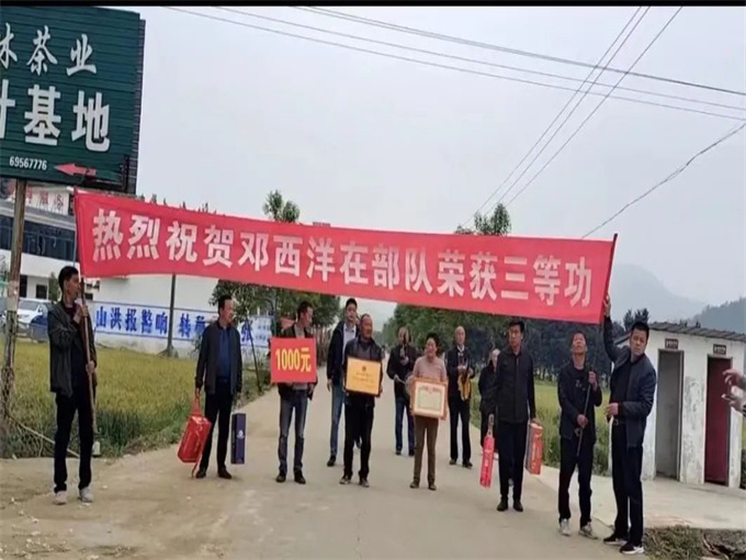 鄧西洋父親表示,“兒子在部隊榮立三等功,離不開黨和部隊的培養(yǎng)。今天,政府和部隊將喜報送到家中,作為家屬感到非常光榮,也將全力支持他,讓他安心服役,再立新功。”