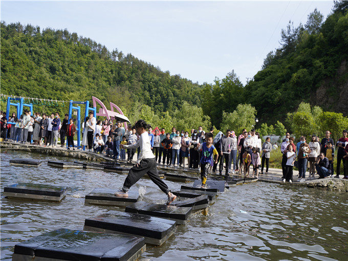 “整個(gè)五一,我們的停車場(chǎng)始終是滿載狀態(tài),每天近千人來這里游玩,我們這兒的老百姓在村委和縣文旅集團(tuán)的指導(dǎo)下,有開農(nóng)家菜館的,有路邊練攤的,還有就地入職工作的,我們村真的好久沒這么熱鬧了。”土槽村支書謝雙定感慨道。