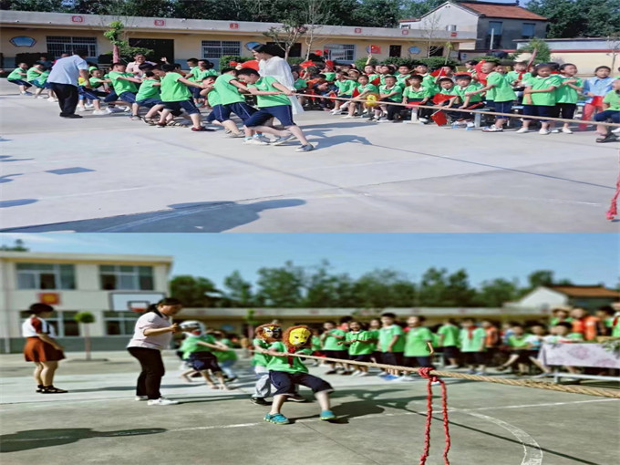 大橋符小學(xué)以拔河比賽的方式慶祝六一兒童節(jié)?!同學(xué)們緊握繩索,身子半蹲,重心下沉,腳用力抵著地面,身體后仰用力拽繩。在口號(hào)聲、吶喊聲、助威聲中,心往一處想,勁往一處使,用盡洪荒之力,為勝利而拼搏。拼出了激情,拼出了友誼。一根繩,一條心,迸發(fā)出的是身體中無(wú)限的潛力,拉近的是彼此間心與心的距離!展現(xiàn)了運(yùn)動(dòng)之美,綻放生命之光!