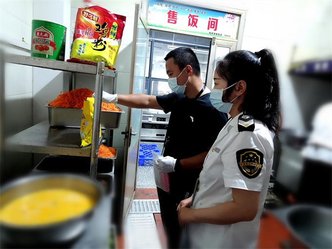 駐點(diǎn)守護(hù),硬核護(hù)航 根據(jù)考點(diǎn)安排,抽調(diào)40余名專業(yè)骨干人員入駐中考食品安全保障點(diǎn),對(duì)供餐單位食品進(jìn)貨查驗(yàn)、索證索票、食品貯存、環(huán)境衛(wèi)生、食品加工制作、從業(yè)人員健康管理、食品留樣等操作環(huán)節(jié)進(jìn)行現(xiàn)場(chǎng)監(jiān)督,督促學(xué)校食堂嚴(yán)格執(zhí)行各項(xiàng)食品安全管理制度,在食品原材料采購(gòu)、切配加工、餐用具清洗消毒等環(huán)節(jié)嚴(yán)格自律,恪守食品安全操作規(guī)范,為廣大考生提供安全的飲食環(huán)境。