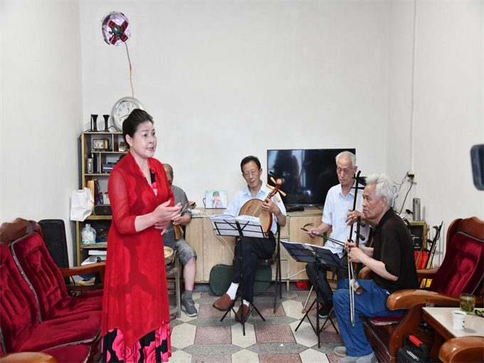 中新河南網(wǎng)6.27日電(鄭翠 張朝甫 黨青一)近日,在二胡、月琴、梆子的伴奏下,一場(chǎng)別開生面的戲曲排練在唐河縣新安社區(qū)的三眼井景點(diǎn)進(jìn)行著,《蘇三起解》、《追韓信》、《嫦娥奔月》、《貴妃醉酒》等經(jīng)典劇目選段一一上演,精彩紛呈的表演引得圍觀者連連叫好、掌聲不斷。這是唐河縣老年劇團(tuán)的一次日常排練,成立于2021年的老年劇團(tuán)由河南省非物質(zhì)文化遺產(chǎn)傳承人方清亮發(fā)起,主要成員為退休的教師、職工、劇團(tuán)演員等民間戲曲愛好者。