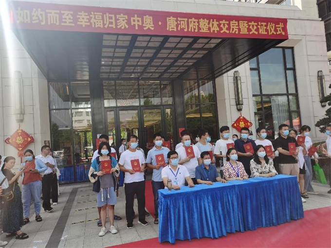 中新河南網(wǎng)6月25日電(鄭翠 張朝甫)6月25日,在中奧·唐河府小區(qū)的“交房暨交證”儀式現(xiàn)場(chǎng),業(yè)主在完成收房手續(xù)后,同步拿到了房屋鑰匙和不動(dòng)產(chǎn)權(quán)證書。該項(xiàng)措施簡(jiǎn)化了購(gòu)房人的辦證手續(xù),方便了業(yè)主辦理落戶、子女上學(xué)、抵押貸款等與房產(chǎn)有關(guān)的事宜;顒(dòng)現(xiàn)場(chǎng),拿到不動(dòng)產(chǎn)權(quán)證書的群眾紛紛表示,交房即發(fā)證”的實(shí)施,讓老百姓切實(shí)感受到政府職能向服務(wù)型轉(zhuǎn)變的決心。
