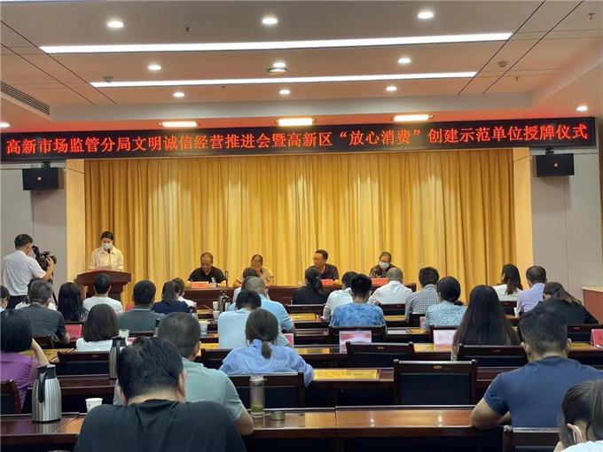 高新市場(chǎng)監(jiān)管局:召開(kāi)文明誠(chéng)信經(jīng)營(yíng)推進(jìn)會(huì)暨“放心消費(fèi)”創(chuàng)建示范單位授牌儀式表