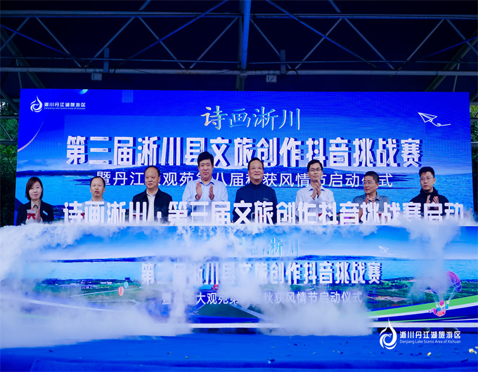中新河南網(wǎng)9月26日電(祁金波 李克選)9月24日上午,淅川縣第三屆文旅創(chuàng)作抖音挑戰(zhàn)賽暨丹江大觀苑第八屆秋獲風(fēng)情節(jié)啟動(dòng)儀式在丹江大觀苑舉行。南陽市文廣旅局黨組成員、市博物館館長王曉杰,淅川縣政府黨組副書記辛澤濤,淅川文廣旅局局長蘇方,淅川旅游服務(wù)中心主任趙成、媒體代表及淅川文旅創(chuàng)作協(xié)會(huì)等參加啟動(dòng)儀式。