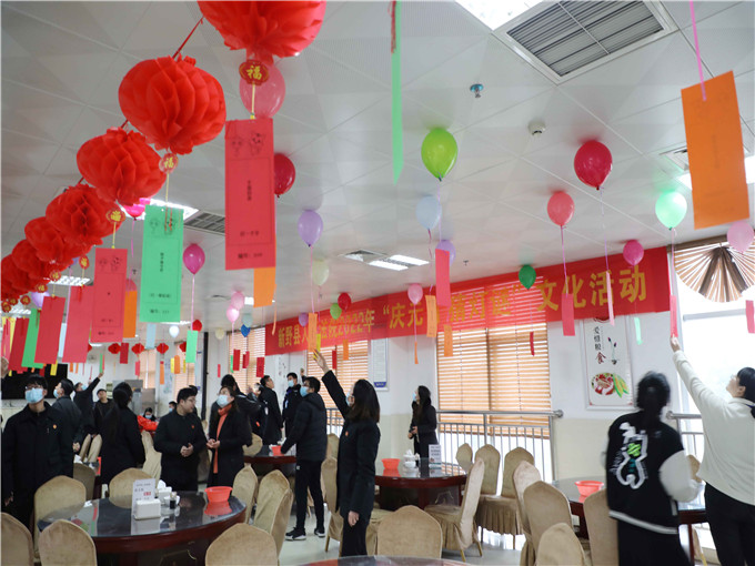 當(dāng)天下午,五顏六色的謎面紙條映襯下,大紅燈籠懸掛,喜慶氛圍撲面而來。此次活動為干警準(zhǔn)備了150余條謎語,謎面、謎底的種類繁多,涵蓋了文學(xué)歷史、詩詞諺語、科普知識、生活常識等,既有通俗易懂的趣味猜題,也有較為復(fù)雜的抽象謎題,既具娛樂性,又具知識性;顒蝇F(xiàn)場,吸引了越來越多的干警,有的盯著謎題凝神思考,有的為自己猜中謎底露出喜悅的表情,有的興奮地到兌獎處領(lǐng)獎品,陣陣歡笑聲不時傳出……